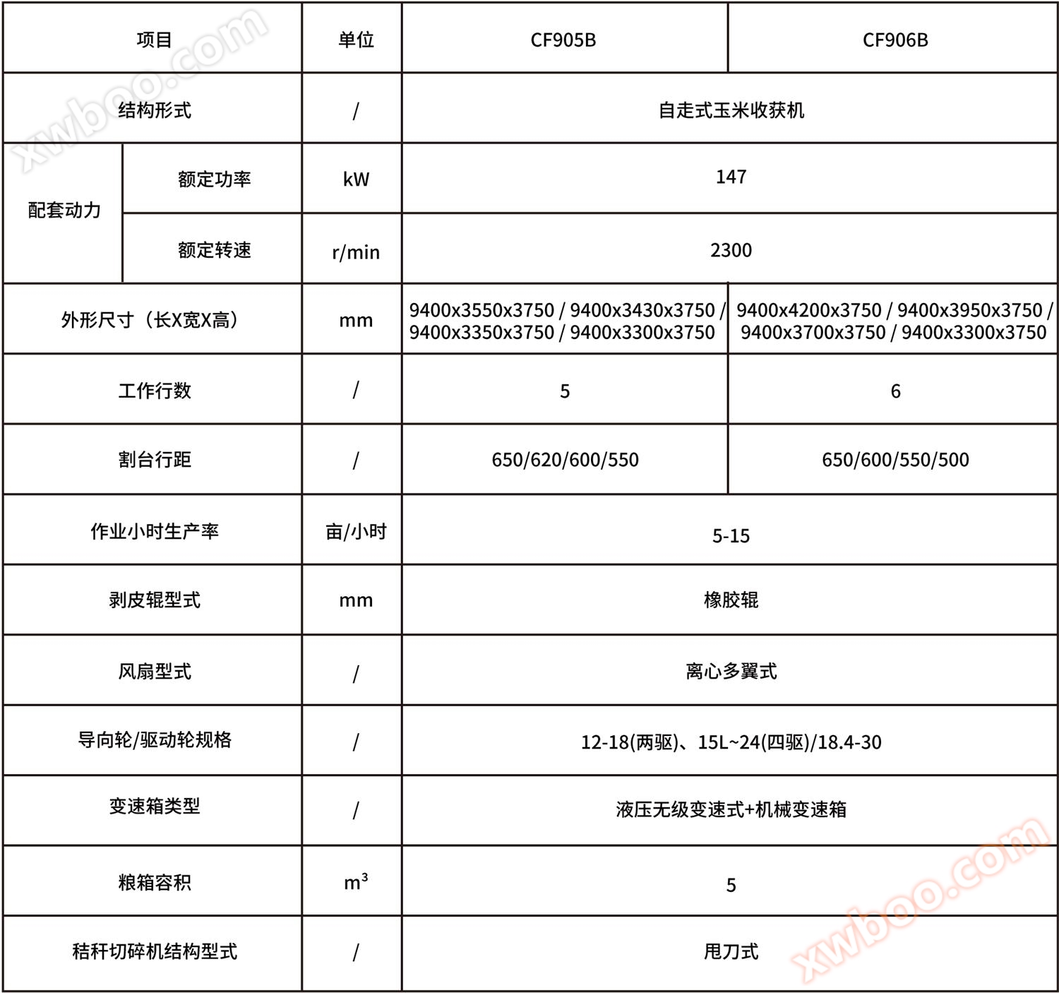 CF905B/CF906B is a corn harvesting machinery independently developed by Changfa Agricultural Equipment. The machine adopts static hydraulic drive technology, which is comfortable to operate and has high work efficiency. It can achieve the tasks of picking ears, conveying, peeling, packing corn crops, and straw crushing and returning to the field.